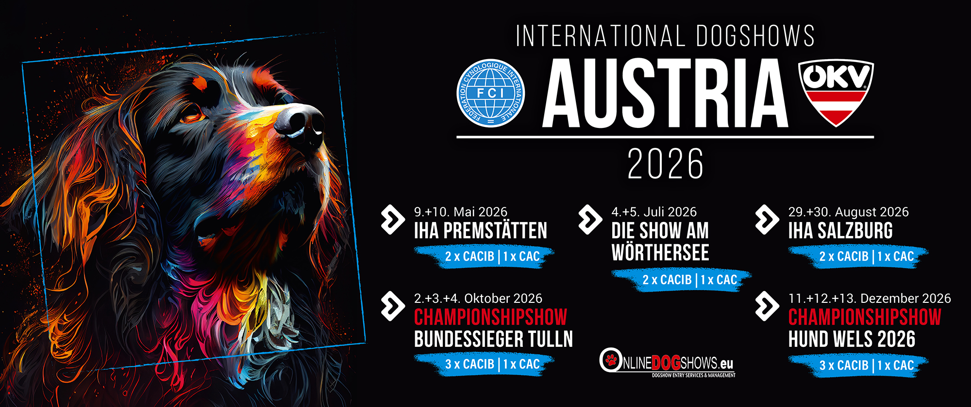 Der Österreichische Kynologenverband (ÖKV), gegründet 1909, ist der Dachverband von rund 100 österreichischen Hundeverbänden mit rund 500 angeschlossenen Vereinen, die sich mit Sport, Haltung, Erziehung, Ausstellung, Ausbildung, Prüfung und Zucht des Hundes beschäftigen. Der Österreichische Kynologenverband ist als einziger österreichischer Hundedachverband Mitglied der internationalen Dachorganisation des Hundewesens, der FCI (Fédération Cynologique Internationale). >>> weiter