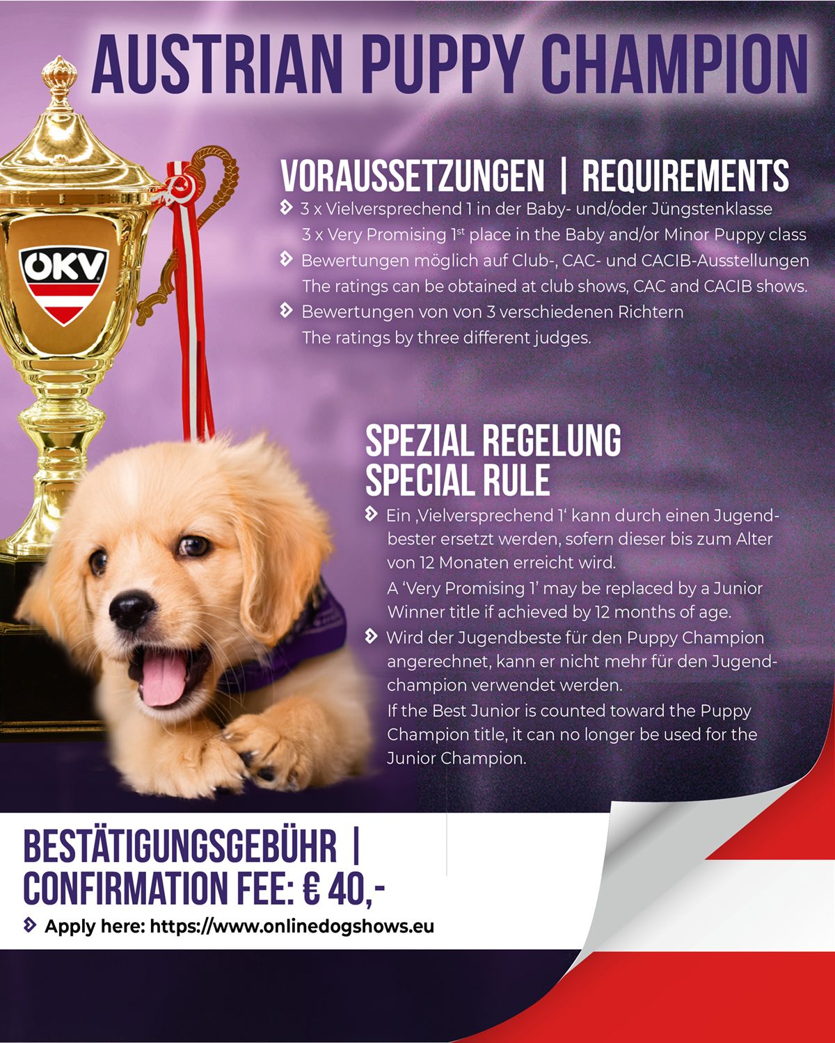 One (1) CAC from a CACIB-show in austria, if the dog is already confirmed champion of the country where the dog lives.