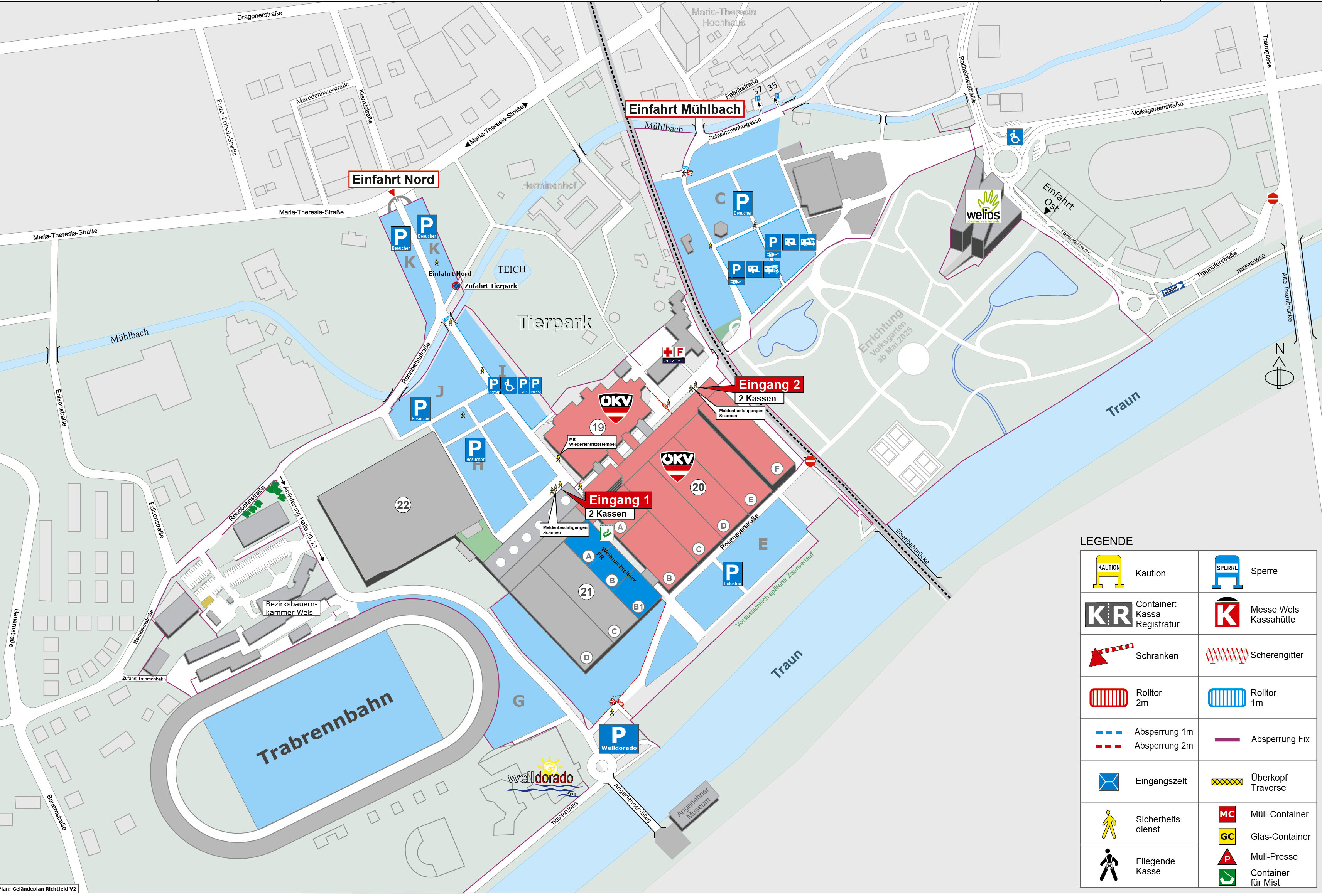 Eingang 1: Einfahrt NORD (AUSTELLER, RICHTER & BESUCHER) - Adresse: Maria-Theresia-Strasse 32, 4600 Wels